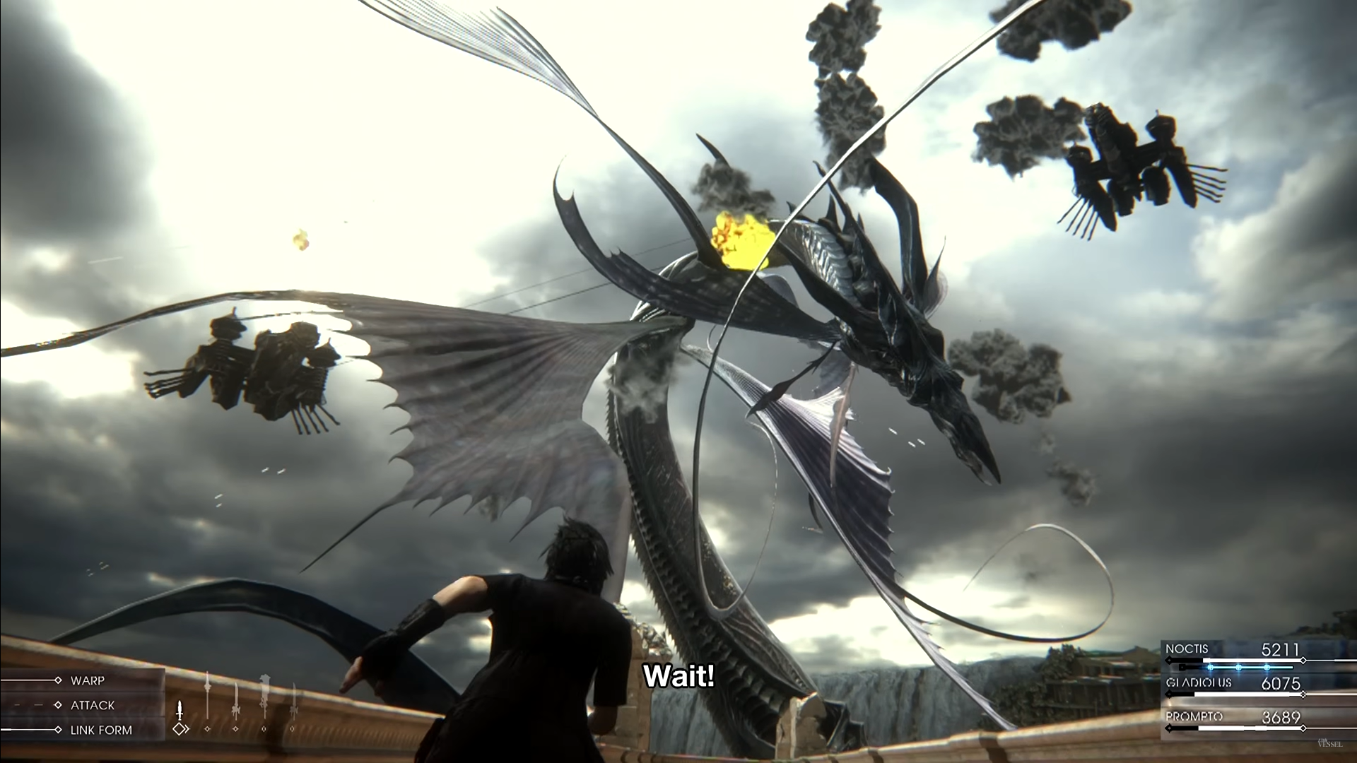 Arden, faisant démonstration de ses pouvoirs, envoie une version démoniaque de Verstael affronter le groupe. Le combat déclenche une explosion massive dans le bâtiment impérial, forçant Noctis et ses compagnons à fuir.